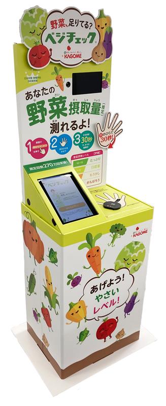 野菜摂取量を簡単に測定できる「ベジチェック」をより多くの方に体験していただくことを目的に、体験件数の向上を目指した専用什器を開発しました。